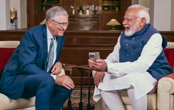 स्वदेशी टाइम्स, नई दिल्ली : भारत के प्रधानमंत्री नरेंद्र मोदी और माइक्रोसॉफ्ट के सह-संस्थापक बिल गेट्स ने हाल ही में आर्टिफिशियल इंटेलिजेंस (AI) से लेकर स्वास्थ्य, क्लाइमेट और रीसाइक्लिंग समेत कई मुद्दों पर बेहद खास चर्चा की। पीएम मोदी और बिल गेट्स की इस चर्चा का एक वीडियो आज रिलीज किया गया है। इस वीडियो में पीएम मोदी ने भारत में टेक्नोलॉजी, इनोवेशन और रीसाइक्लिंग को लेकर दिल खोलकर बात की। इसके साथ ही प्रधानमंत्री नरेंद्र मोदी ने बिल गेट्स को अपने भविष्य के लक्ष्यों के बारे में भी बताया।