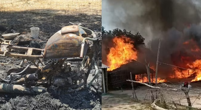 बिजली की शार्ट सर्किट से लगी भीषण आग से फूस के 15 मकान जलकर राख, तीन मवेशी झुलसे