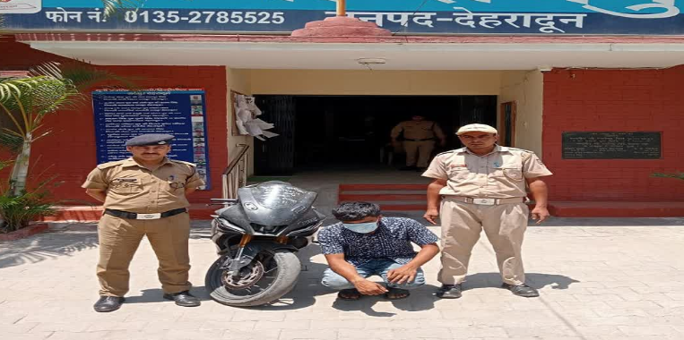 जिस पर पुलिस टीम ने थाना रायपुर क्षेत्र के अंर्तगत सघन चेकिंग अभियान चलाया गया. चेकिंग के दौरान सहस्त्रधारा रोड मयूर विहार से घटना को अंजाम देने वाले आरोपी अर्पित कुमार निवासी बिजनौर को चोरी की मोटर साईकिल के साथ गिरफ्तार किया गया. थाना रायपुर प्रभारी कुंदन राम ने बताया आरोपी अर्पित कुमार देहरादून स्थित निजी संस्थान में बीबीए का छात्र है. वर्तमान में डांडा खुदानेवाला में किराये के मकान में रहता है. आरोपी के परिजनों ने उसे स्प्लेंडर मोटरसाइकिल दी है. उसके दोस्तों के पास महंगी मोटर साईकिलें थी. उसने अपनी महिला मित्र को इम्प्रेस करने के लिए यामाहा R1-5 को चोरी की. जिसे वह कुछ दिनों के लिए बिजनौर ले गया. आरोपी ने गांव में नम्बर प्लेट हटाकर कुछ समय बाद देहरादून आ गया.