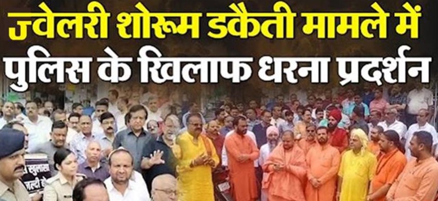 ज्वैलर्स शोरूम में दिनदहाड़े हुई डकैती के खुलासे को लेकर अब संतों ने मोर्चा खोला, पुलिस के खिलाफ किया प्रदर्शन