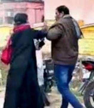 महिला मित्र ने बुर्का पहने महिला का मोबाइल छीनकर जमीन पर फेंका