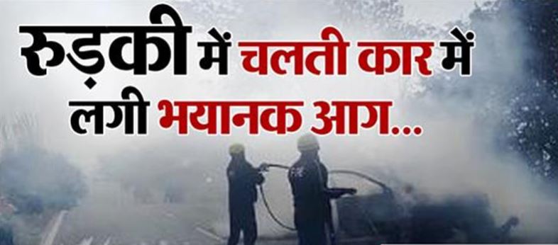 रुड़कीः चलती कार में लगी भयानक आग, बाल-बाल बचे सवार