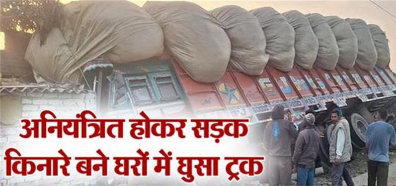 ऊधम सिंह नगरः सड़क किनारे घरों में घुसा ट्रक, मौके पर चालक फरार
