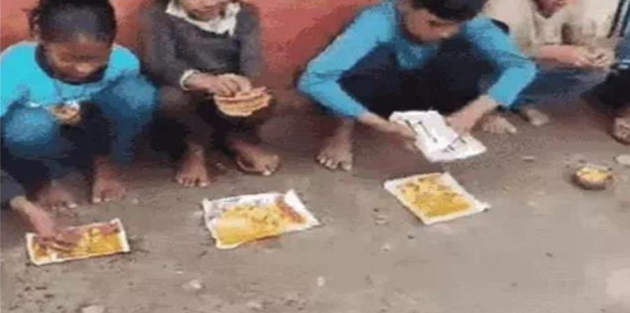 शर्मनाक लापरवाही: स्कूल में बच्चों को रद्दी कागज़ पर परोसा गया मिड-डे मील